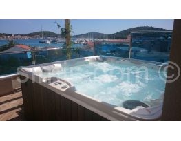 We are mediating the sale of an attractive detached house in an area near Rogoznica, in a prime location just 100m from the sea. The house consists of three floors, with a total gross area of approximately 325 m2. On the first floor there is a garage, two bathrooms, a room and a large open room with a kitchen. This floor needs cosmetic updating and can be used as a tavern or as a separate apartment. On the second floor there is a spacious apartment with three bedrooms, three bathrooms and a large open-concept kitchen, dining room and living room from which a beautiful view of the sea extends, and there is also a covered terrace. On the third floor there is another beautiful apartment with three bedrooms - each with its own bathroom, there is also an additional bathroom and a large living area with a kitchen and a terrace. The upper two apartments are fully furnished and equipped, each room is equipped with air conditioning, have high-quality PVC windows with mosquito nets and underfloor heating in the bathrooms. All furniture and equipment are included in the price. In the courtyard of the house, which is over 380 m2, there is outdoor parking for 3 cars, a barbecue and a large back terrace with a 30 m2 swimming pool, a sunbathing area with pergolas, an outdoor kitchen and a sitting area for enjoying summer evenings. The house is an excellent investment for buyers who want to enjoy a quiet place with beautiful beaches and crystal-clear sea, and yet have the possibility of quickly arriving in larger towns such as Rogoznica and Trogir.